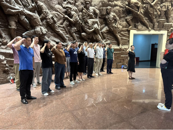 活动现场,全体党员在纪念馆大厅内整齐列队,面对鲜红的中国共产党党旗,在领誓人的带领下,高举右拳,庄严宣誓:“我志愿加入中国共产党……随时准备为党和人民牺牲一切,永不叛党。”铮铮誓言,字字千钧,激荡着每一位党员干部的心灵,这不仅是对入党初心的回顾,更是对党员责任和使命的再次承诺。
